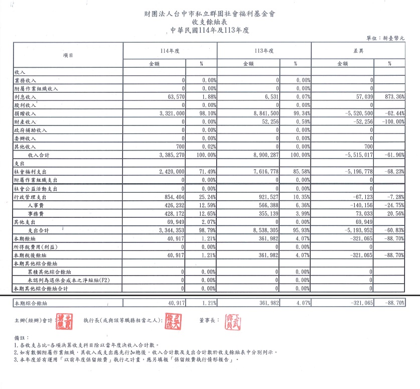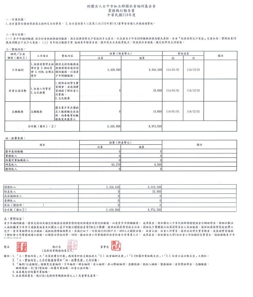 » 公開資訊及年度預決算資料 » 114年決算/接受及支付捐贈名單
